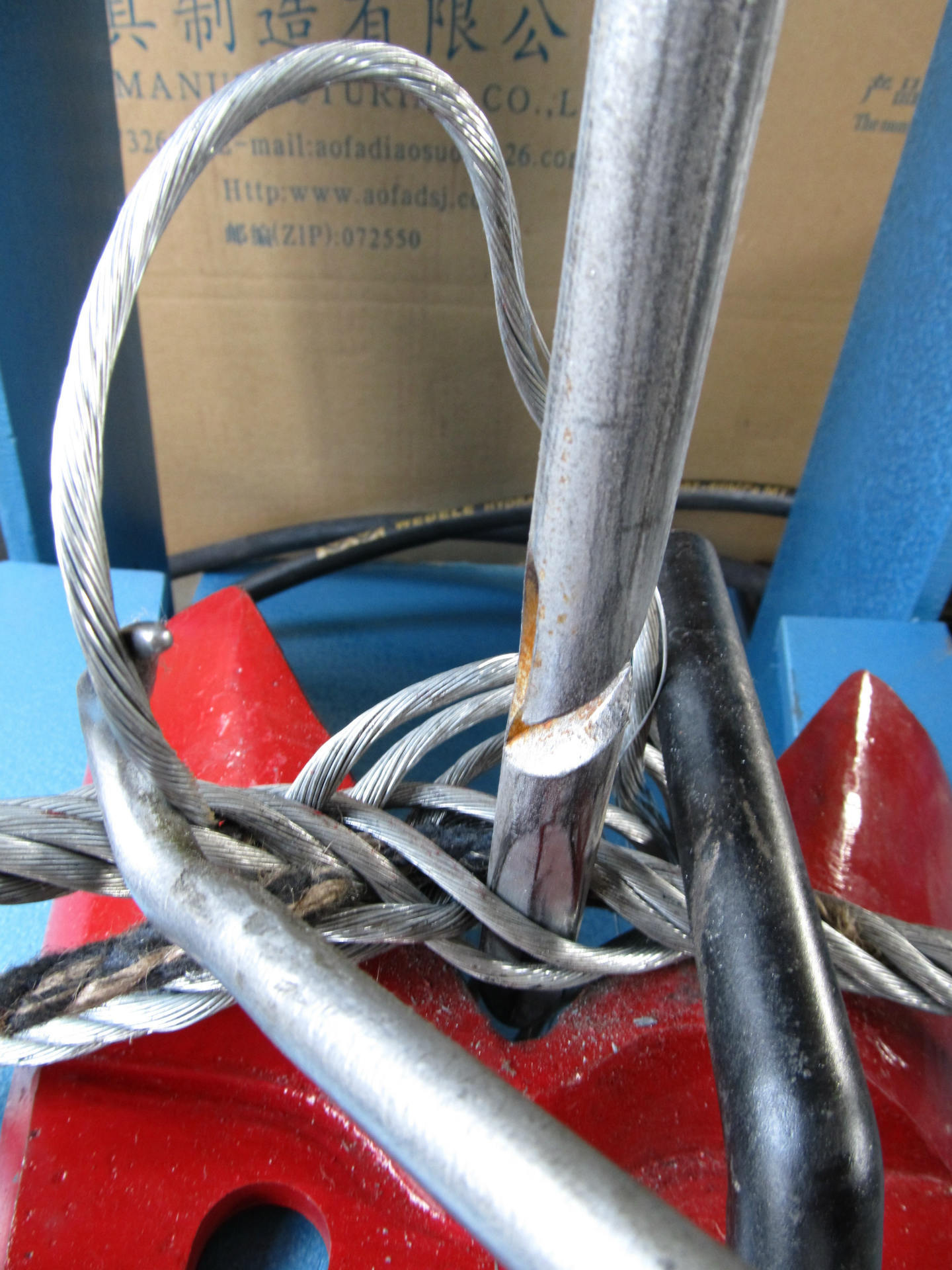 由于這種辦法使用的時(shí)間比較長,而且在人們心目中這種辦法深入鋼絲繩比較多,就比較安全。只是存在各方面的缺點(diǎn),人工費(fèi)用比較高,而且效率比較高,拿一個(gè)直徑20的為一人一天只能做20-30根,而鋼絲繩壓套機(jī)的效率非常高,十倍于人工。有人會(huì)擔(dān)心安全上不如人工,實(shí)際上,權(quán)威檢測(cè)證明,鋼絲繩壓制的安全性更高,費(fèi)用比插編要低,這種方法會(huì)慢慢被接受。